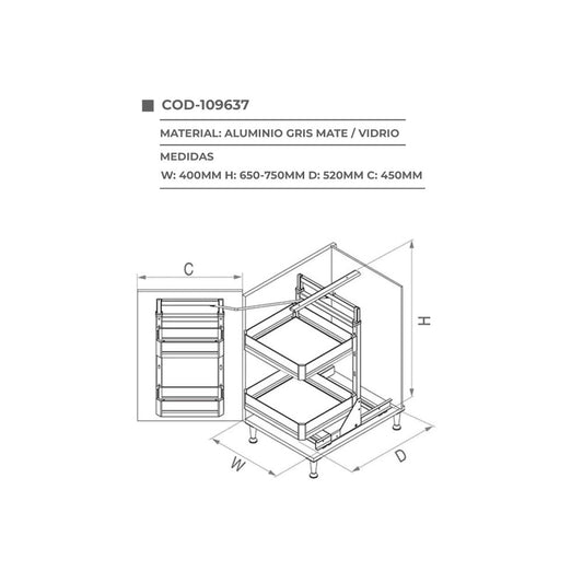 Despensa mini glass/gray mod. upscale 2 divisiones