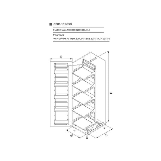 Alacena extraíble cromado X6 divisiones