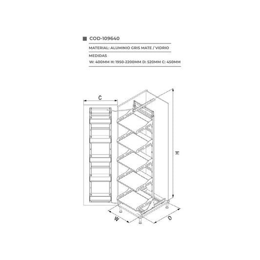 Alacena extraible glass/gray 6 divisiones mod. upscale