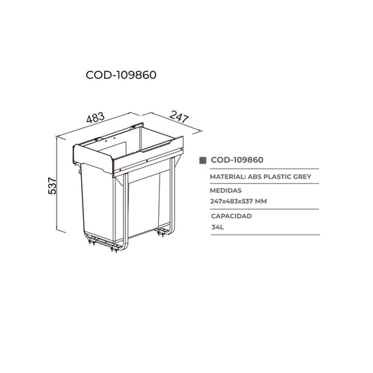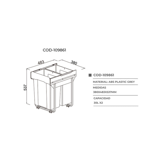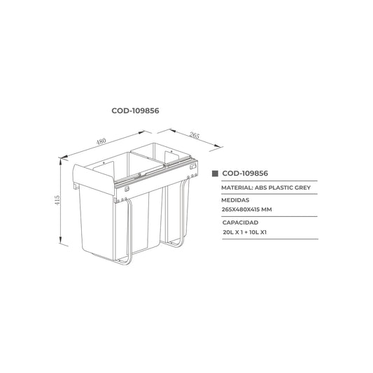 Tacho para cocina 2 contenedores 20 y 10 litros